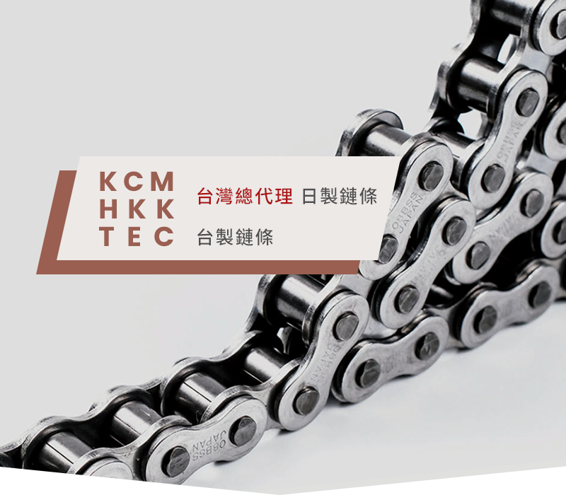 本公司再代理日本HKK鏈條,HKK鏈條公司是以生產大型,高負重的鏈條聞名於世界,產品的品質已達到鏈條(鍊條)的最高境界。HKK鏈條的產品全部均採用無縫軸縫櫬和無縫滾子裝配.