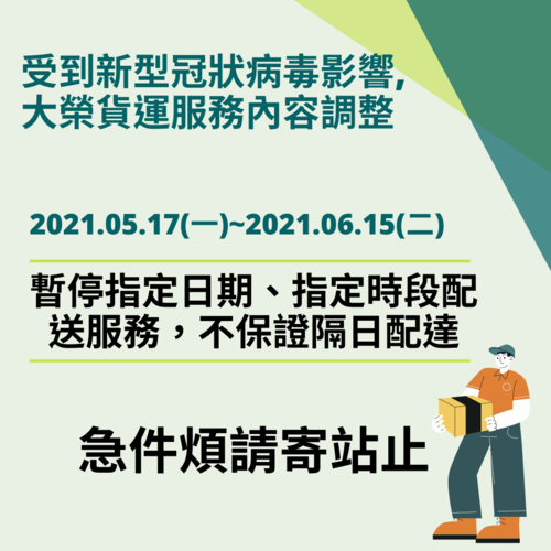 受到新型冠狀病毒影響, 大榮貨運服務內容調整