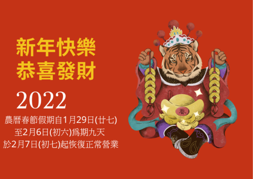 親愛的客戶 您好, 因應春節繁忙期貨量大增並維護配送品質,大榮貨運於2023年1月3日至1月29日期間,將暫停指定日期、指定時段配送服務且無法保證隔日配達。 依行政院人事行政總處公告2023年政府行政機關辦公日曆表, 農曆春節假期自1月20日(廿九)至1月29日(初八)為期十天 於1月20日至1月29日將暫停集配服務,農曆年前最後配貨日為1月19日,並於1月30日(初九)起恢復正常營業。如有不便,敬請見諒。